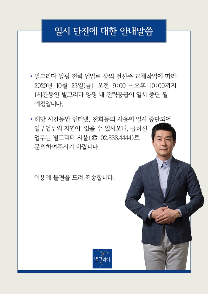 일시 단전에 대한 안내말씀